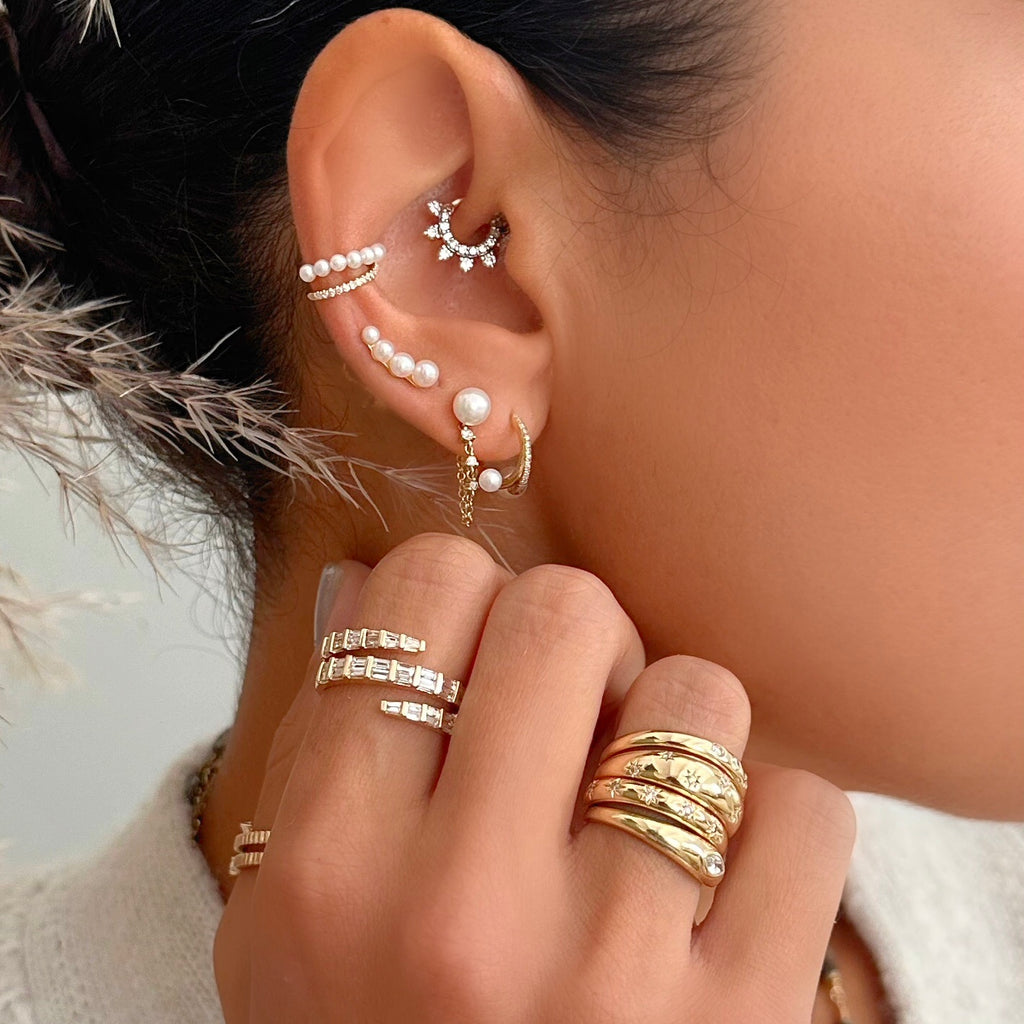 Diamond Encrusted Etched Star Dome Gypsy Ring