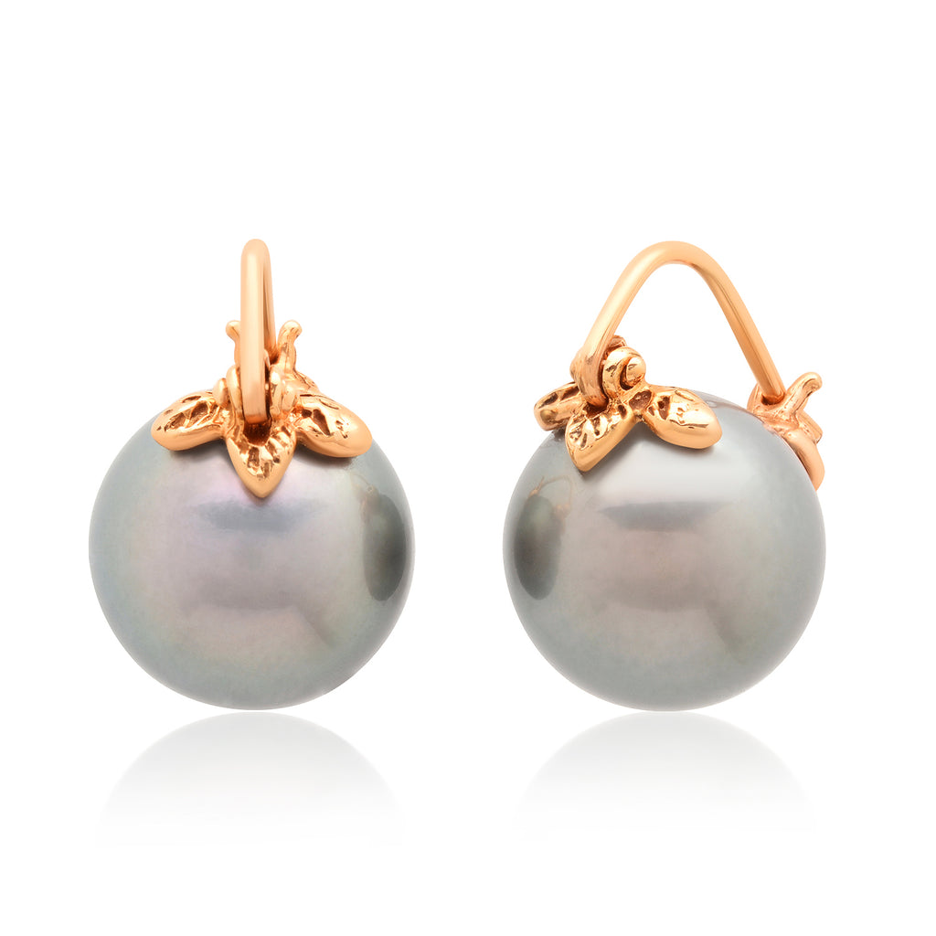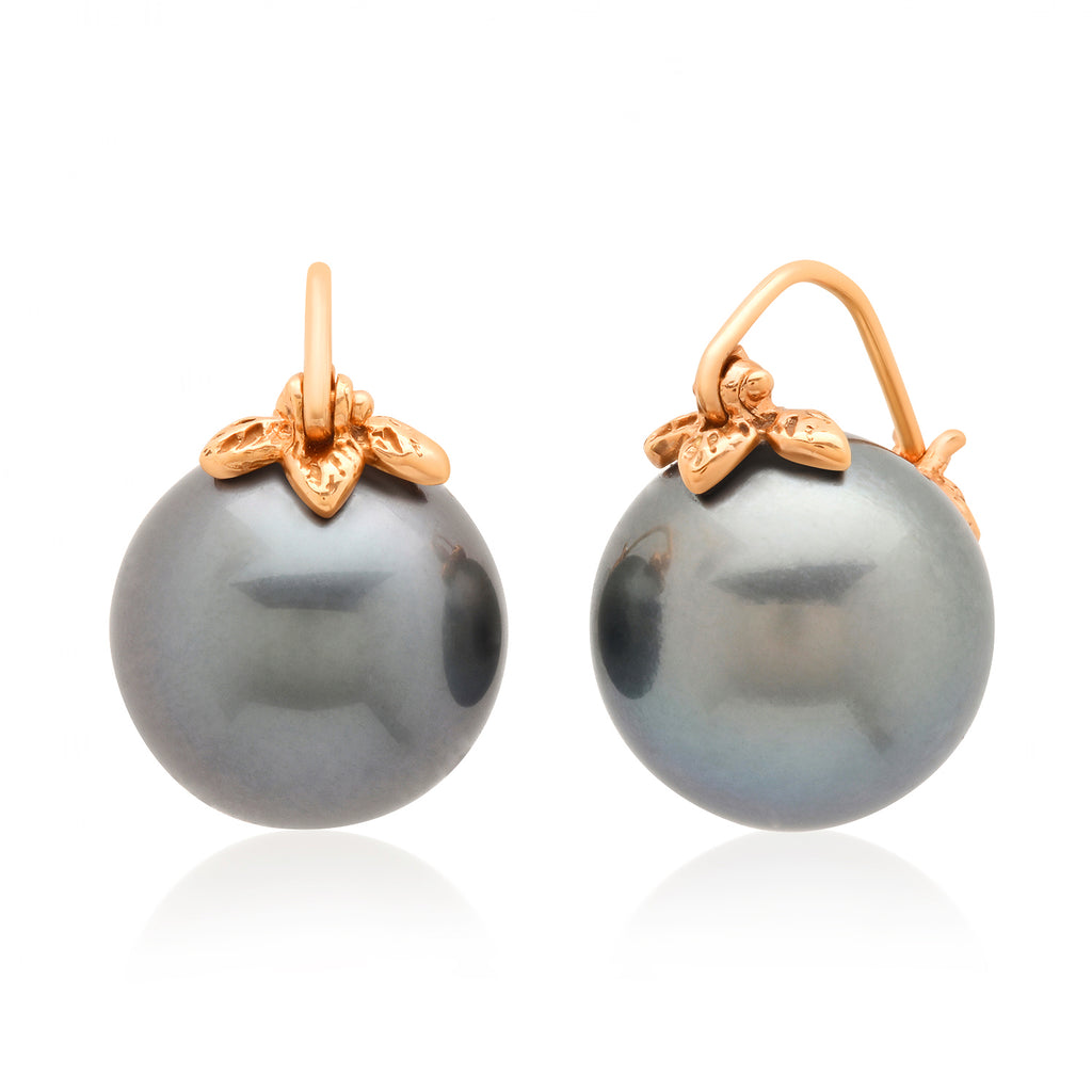 ["1301 RG","18k Rose Gold","earrings","Fine Jewelry","Floating","Floating Tahitian","Floating Tahitian Pearls","Flying Tahitian","Flying Tahitian Pearls","LS","online earrings","Pearl","rose gold","samira 13","samira13","Tahitian Pearls","Triple Leaf Hook"]