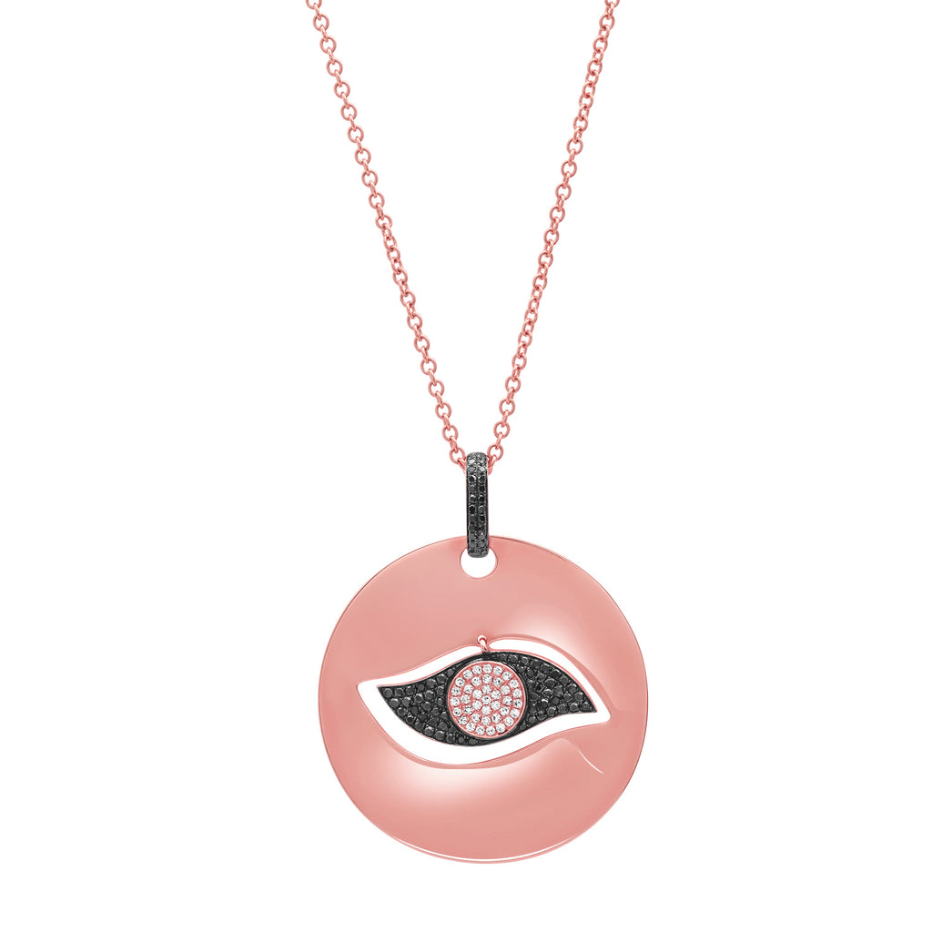 Diamond Evil Eye Cut Out Disc Necklace