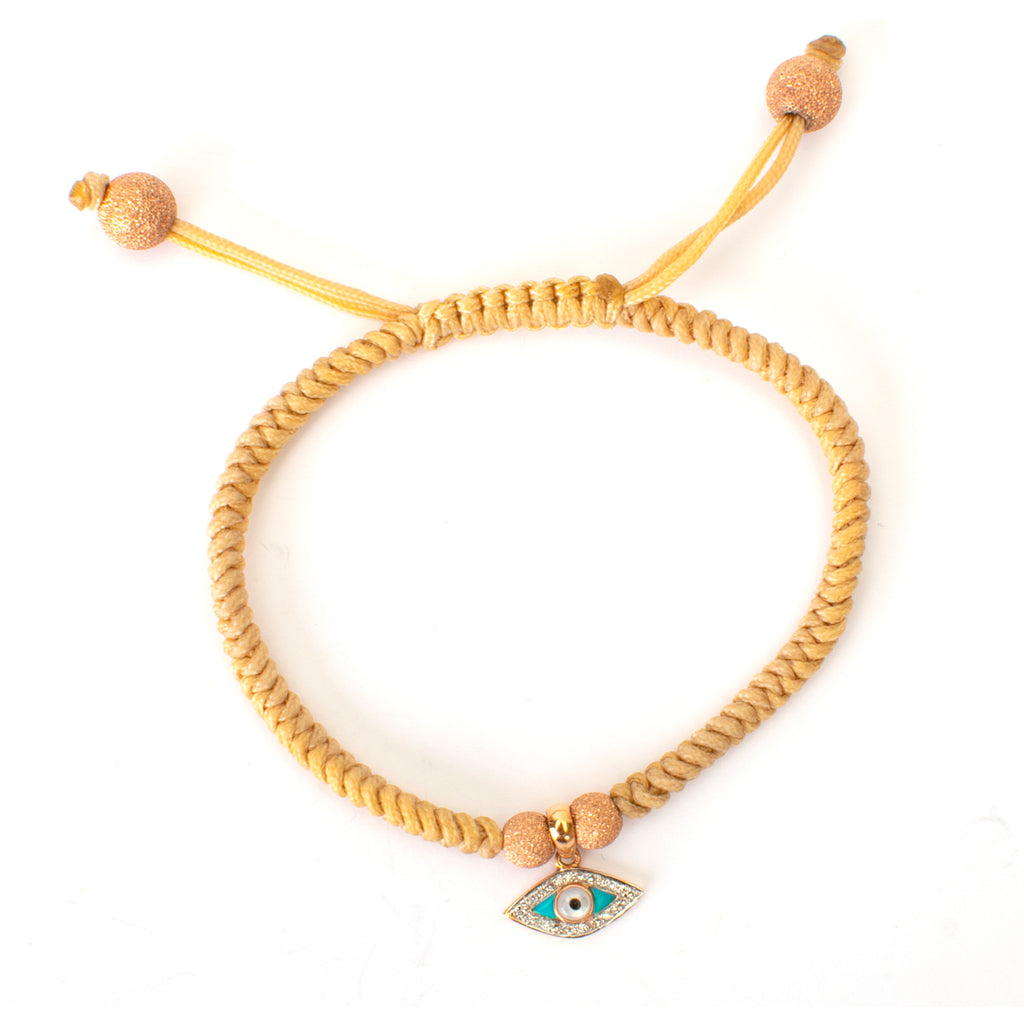 ["Adjustable","Adjustable Cord","Bracelet","BRC-32","Cord and Leather","Cord Bracelet","Diamond Turquoise Evil Eye","Evil eye","Evil Eye Charm","giftguide","LS","P-3300","Rose Gold Flash Beads","Tan","Tan Cord"]