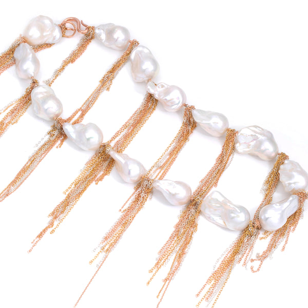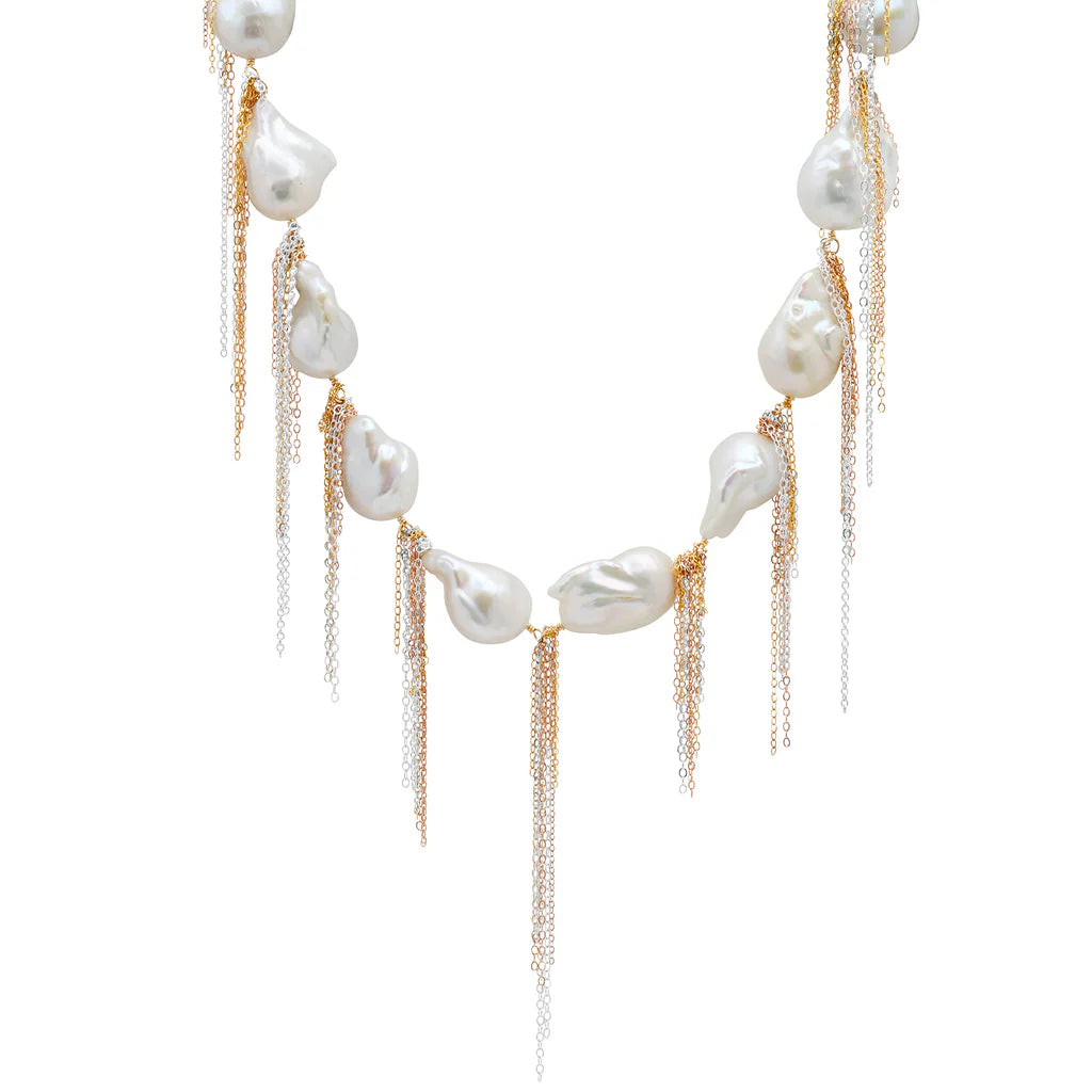 ["Chain","chain fringe","Fringe","fringe necklace","Fringe Strand","giftguide","LS","Necklace","NK Online","NKF-10","NKF-10-W12","online fringe","online necklace","P-4736","pearl necklace","Rose Fill","samira 13","Silver","strand","Tricolor Chain","White Baroque Fringe Strand"]