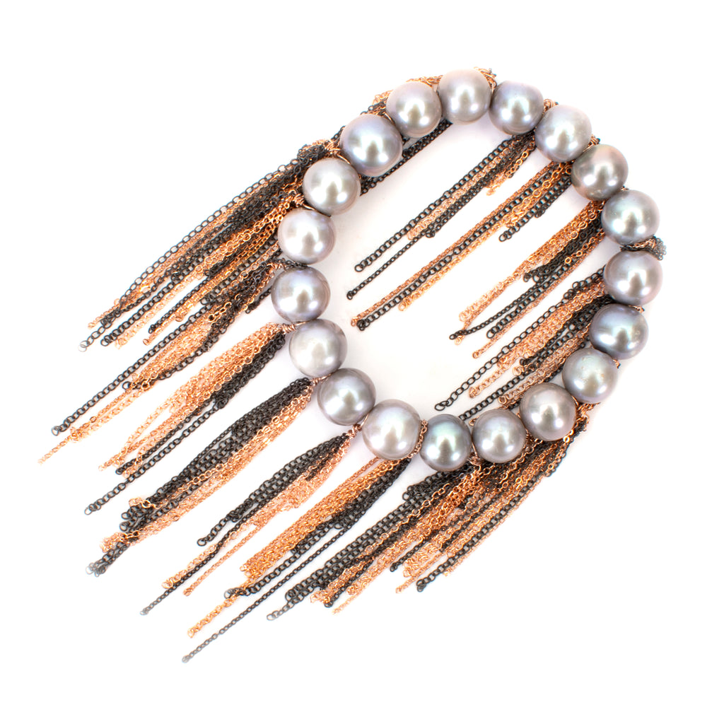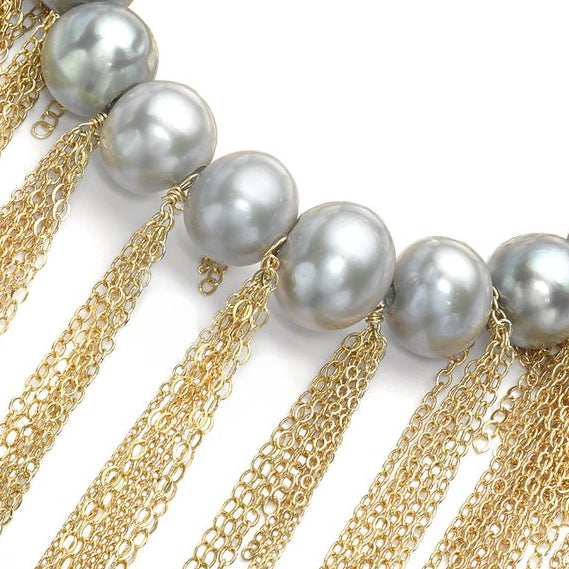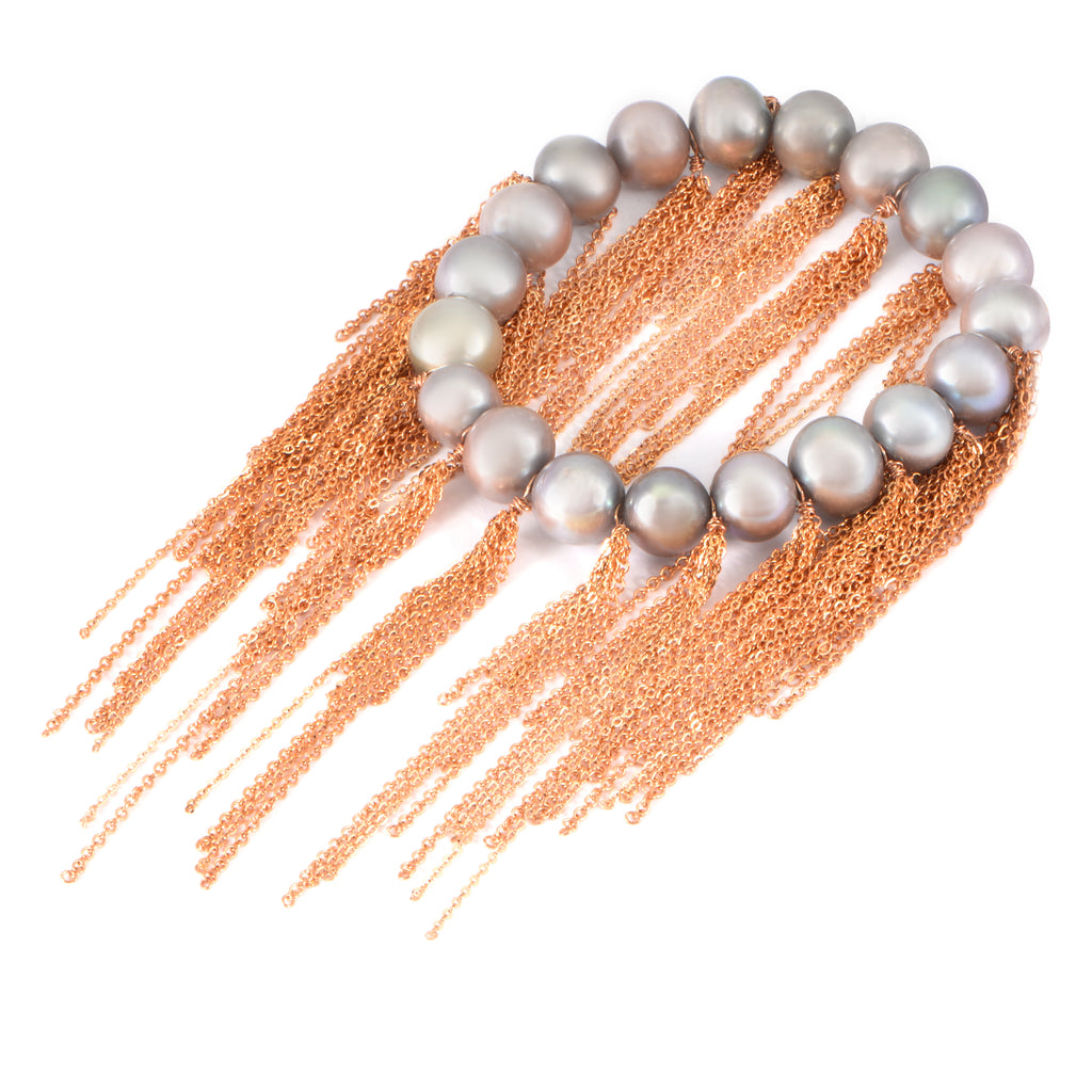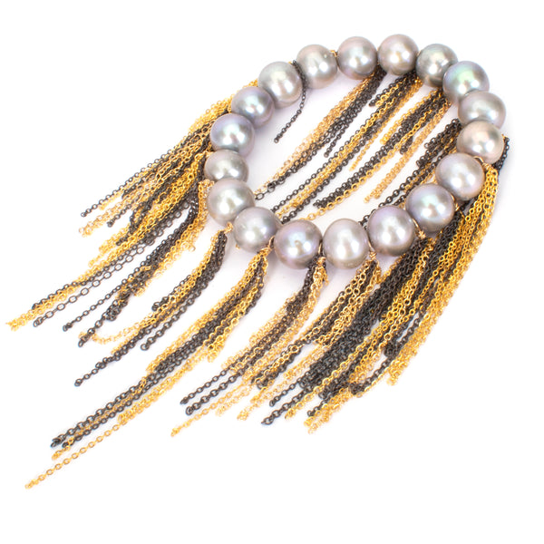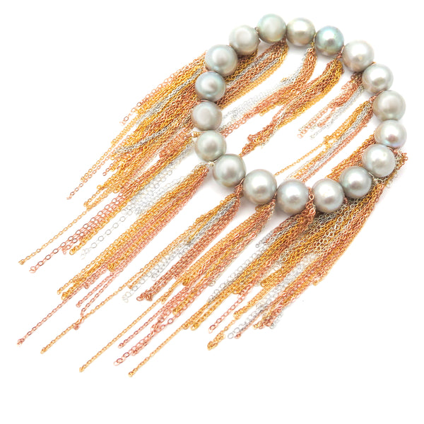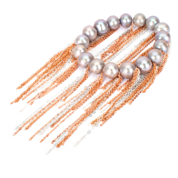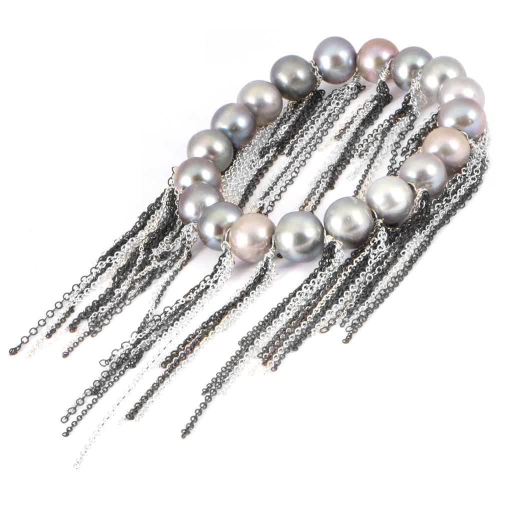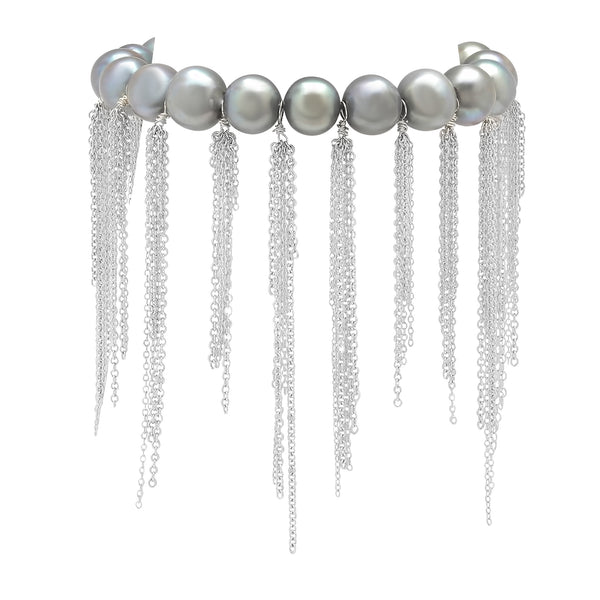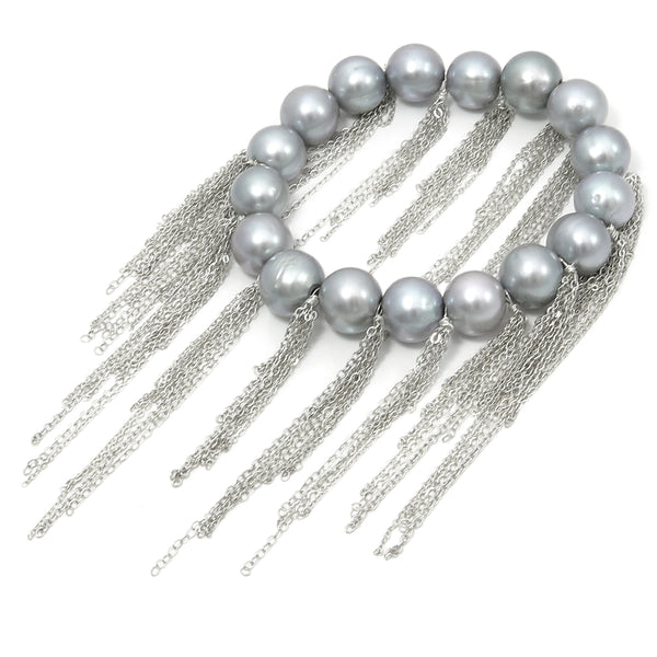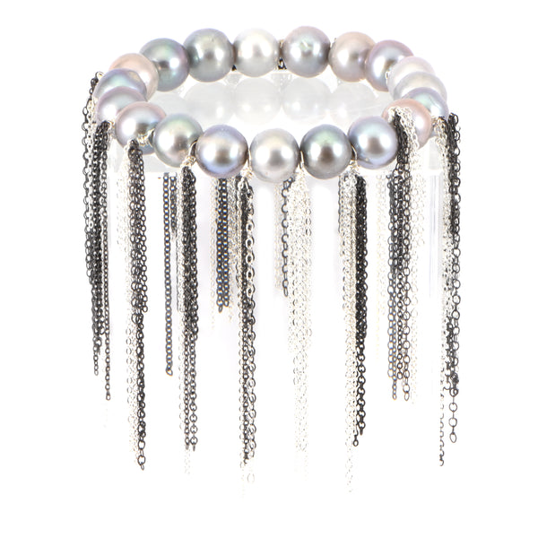 Silver Fresh Water Pearl Fringe Bracelet