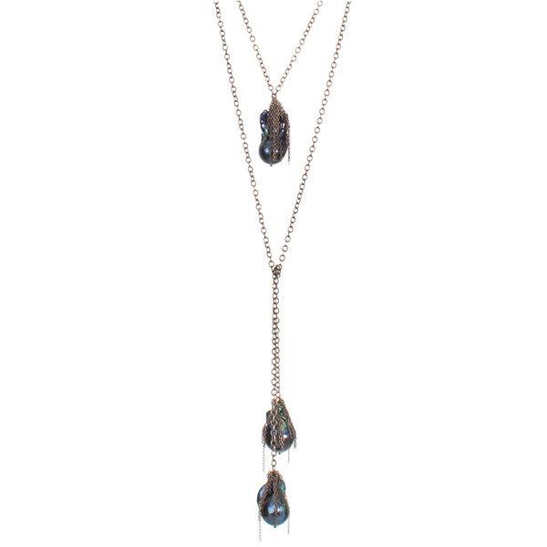 ["Fringe","fringe necklace","Hand woven","Ink Pearls","Intertwined Chain","Lariat","lariat necklace","Lariats and Y Necks","LS","necklace","NK Online","NKF-7-I","online fringe","online necklace","Oxidized","Oxidized Silver","P-1236","pearl lariat","pearl necklace","samira 13 lariat","samira 13 pearl lariat","Triple Pearl"]