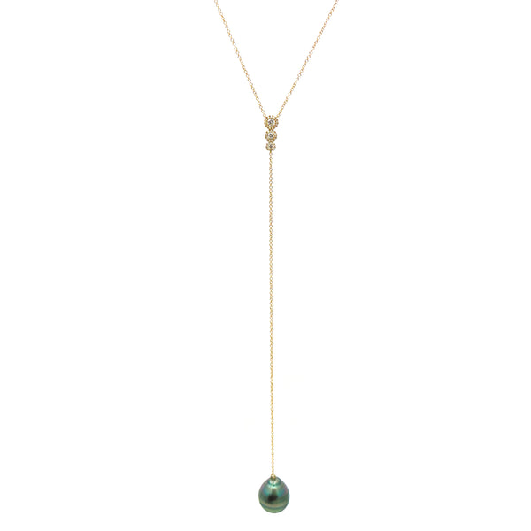 Triple Baroque Ink Fresh Water Pearl Lariat Necklace