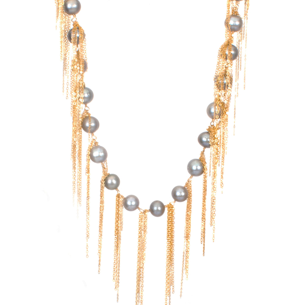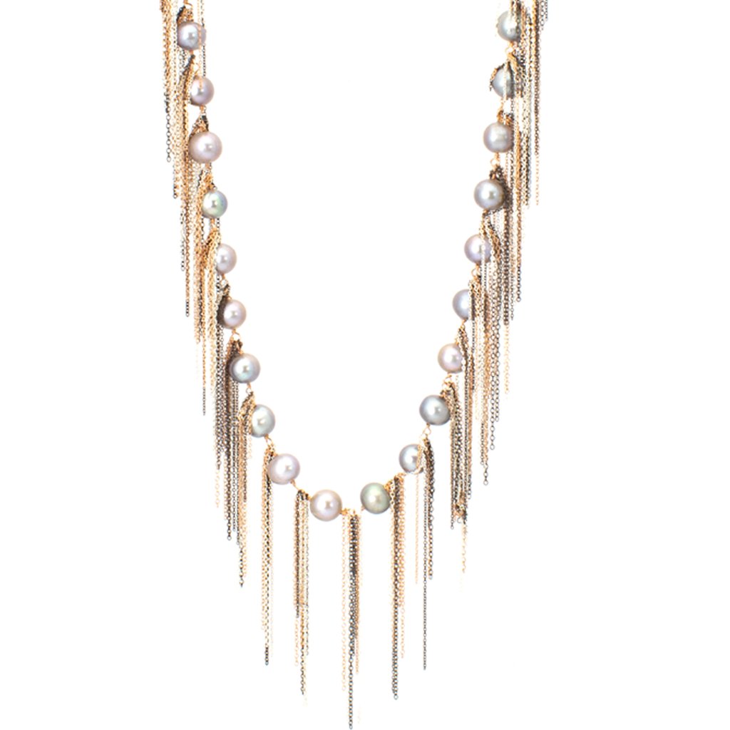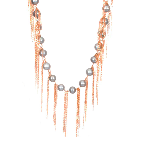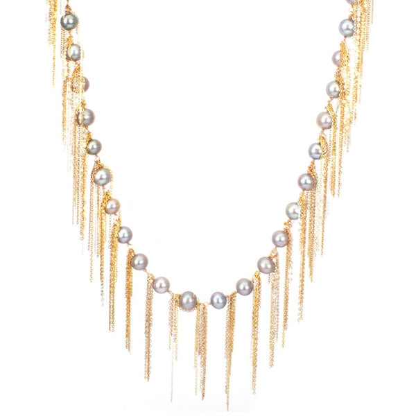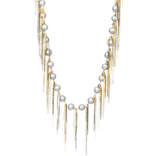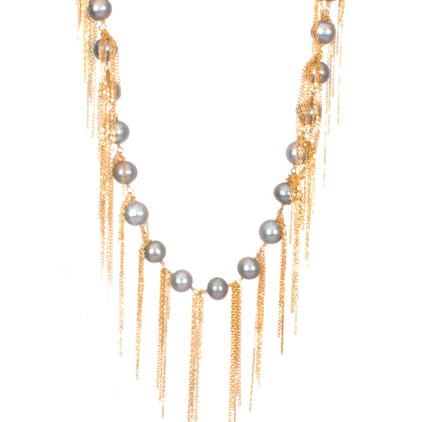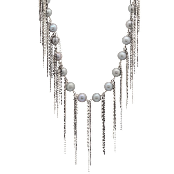 31" Silver Gray Fresh Water Pearl Fringe Necklace