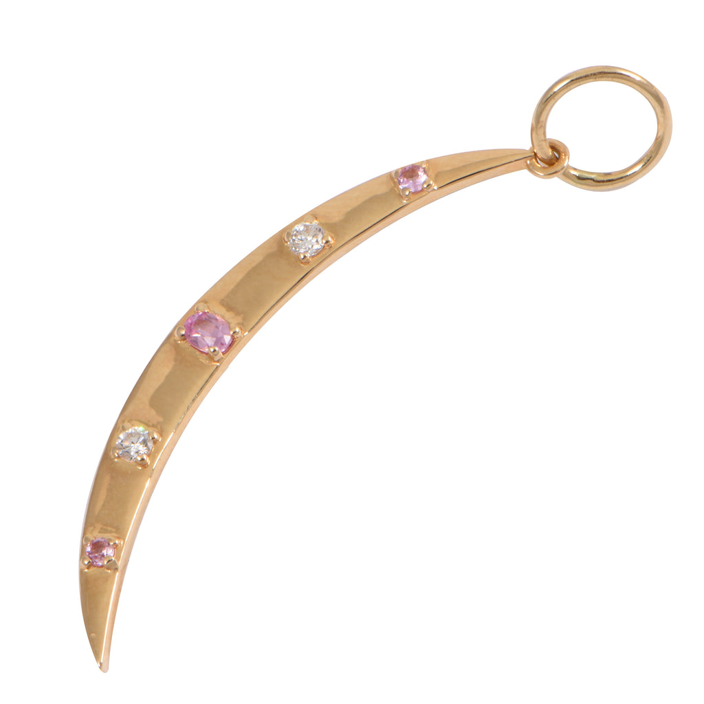 ["Charms","Diamond Pink Sapphire Crescent Charm Pendant","Enamel","LS","Make your Own","NK Online","NP-179","Online Charm","online necklace","P-4510","Pendant","pendants and charms","Pink","World Design Jewelry","Yellow Gold"]