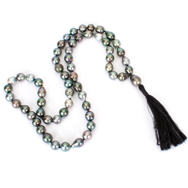 ["60 Tahitian Pearls","Black Silk","Black Silk Tassel","LS","Necklace","NK Online","NKPS-01","online necklace","P-1185","Pearl Knotted Strand","Pearl Strand","Pearl Tassel Strand","Strand","Tahitian Pearls","Tassel Strand"]