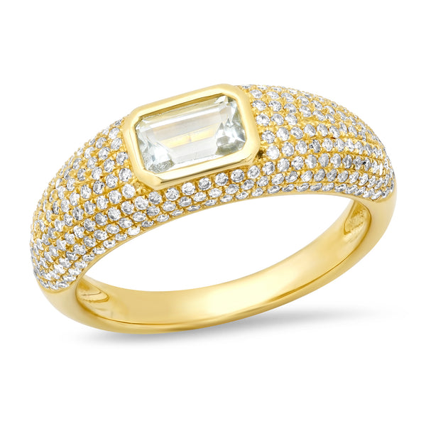 East West Stone Bezel Pave Diamond Dome Gypsy Ring