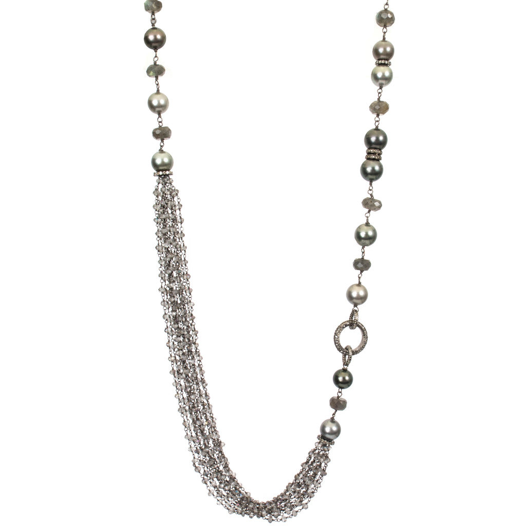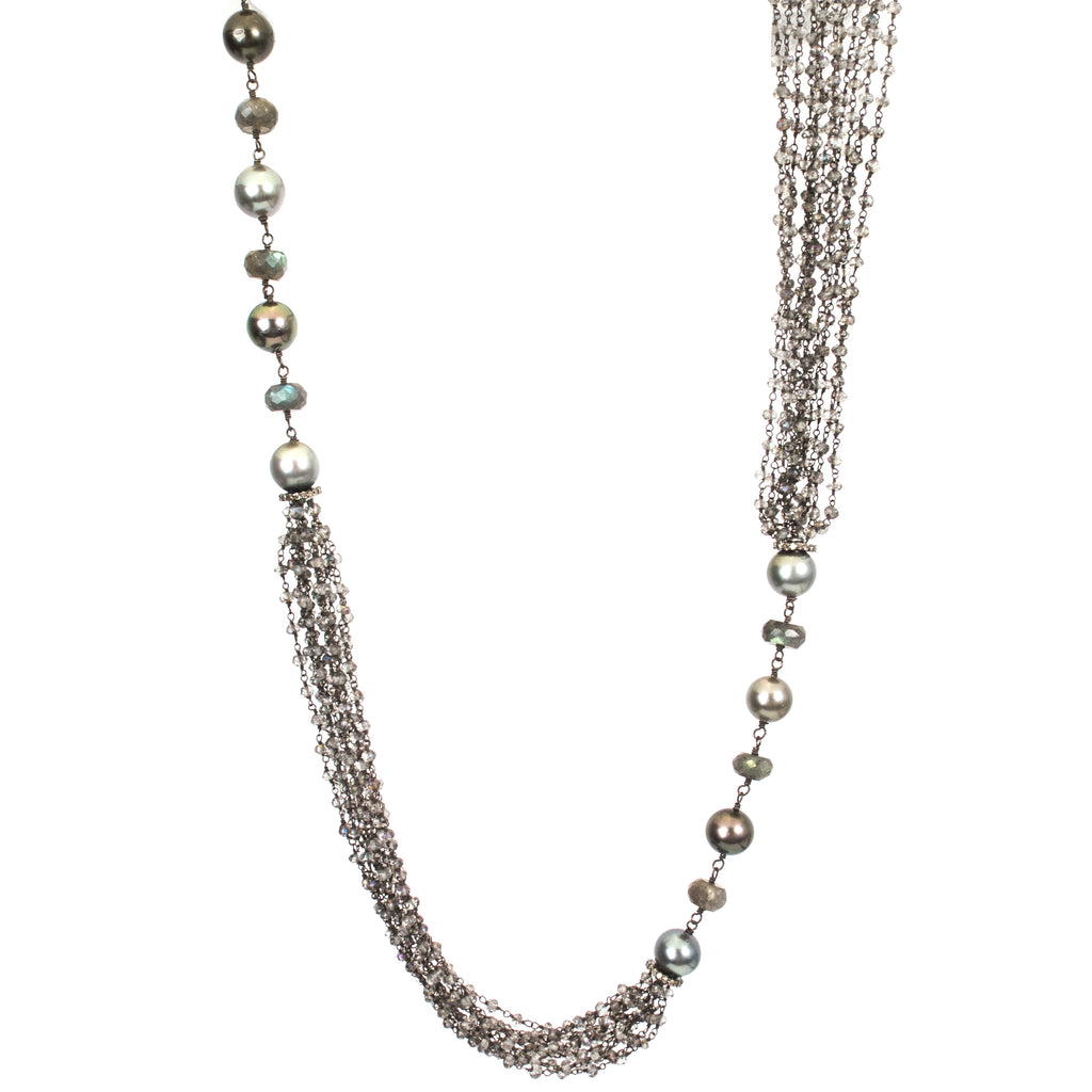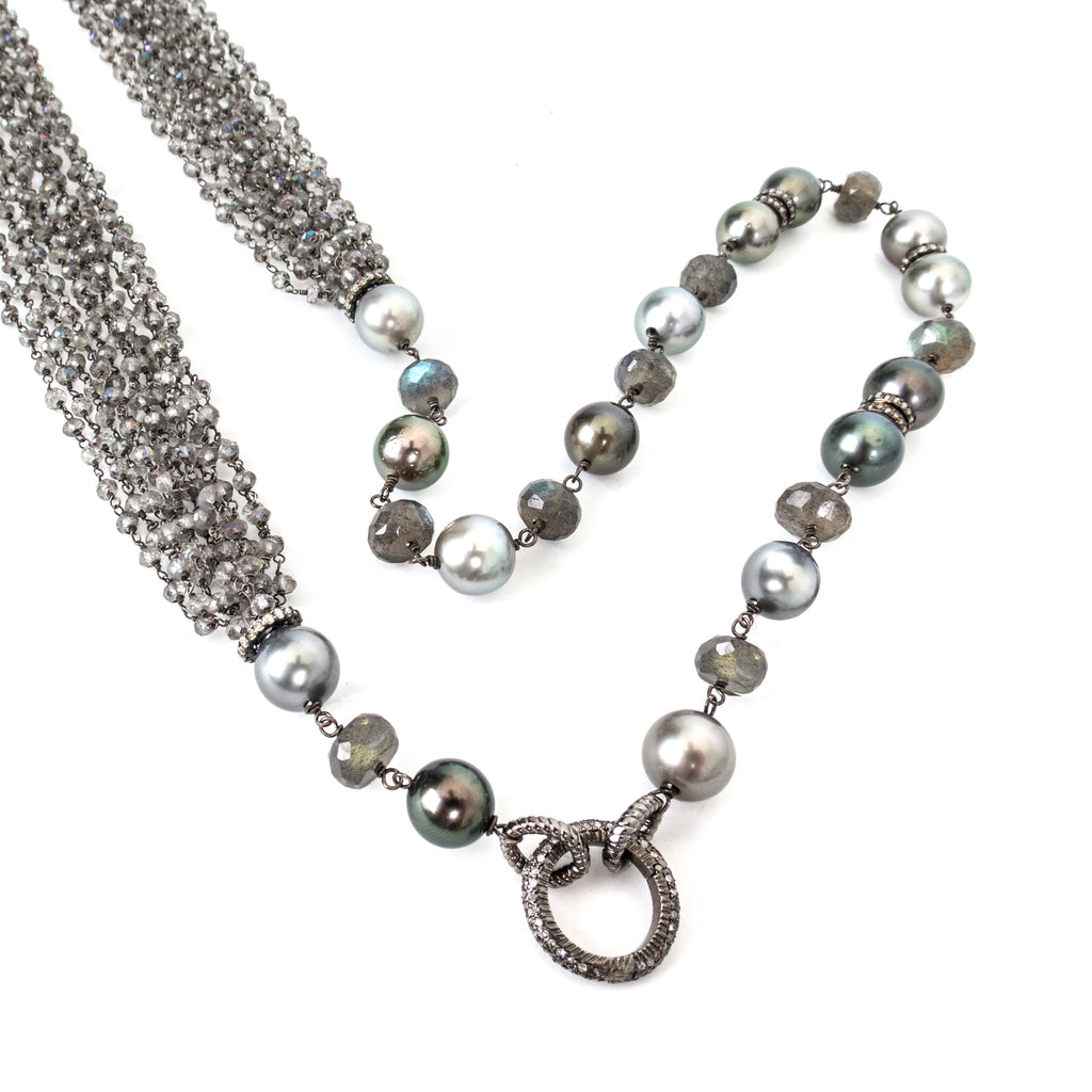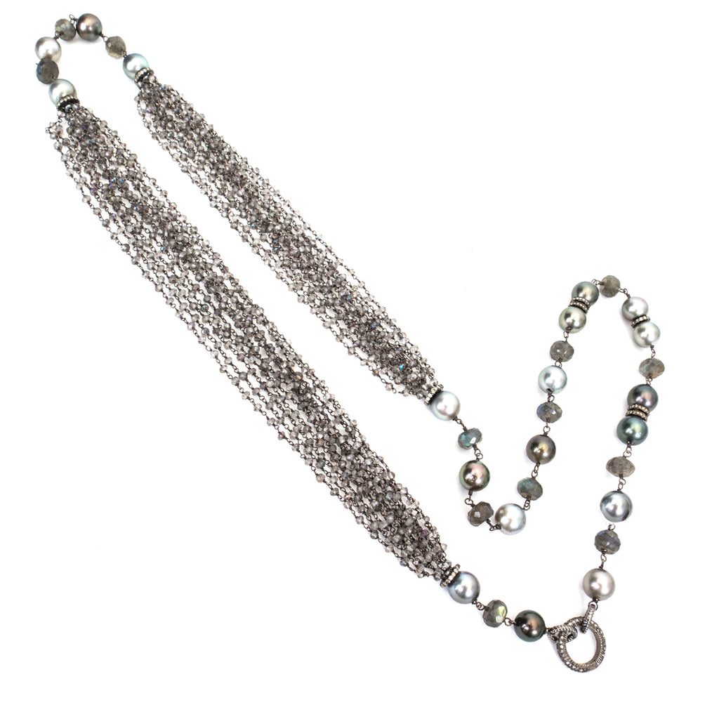 ["labradorite multi strand Tahitian pearl","Labrodorite multi strand Tahitian pearl diamond enhancer","Labrodorite Multi Strand Tahitian Pearl Strand Sterling Silver Pave Diamond Enhancer Necklace","LS","Necklace","NK Online","NKM-01","P-1187","Sterling Silver","Strand"]