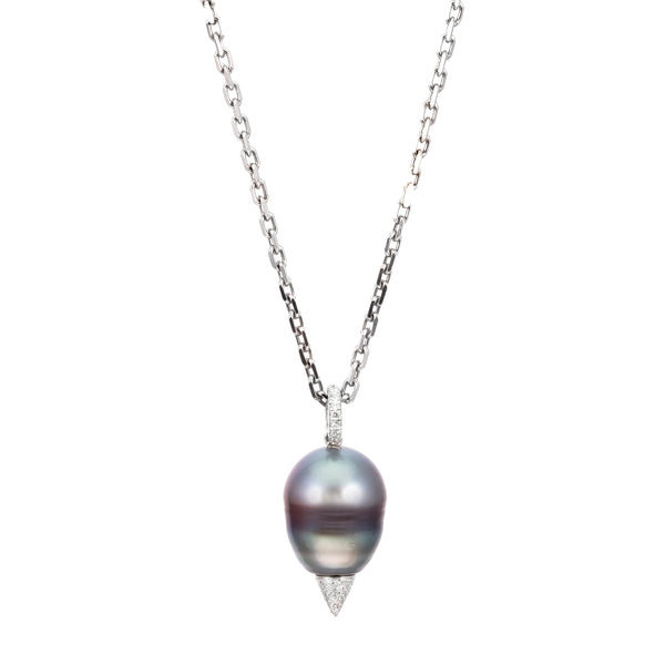 Tahitian Pearl Pave Diamond Spike Pendant Necklace
