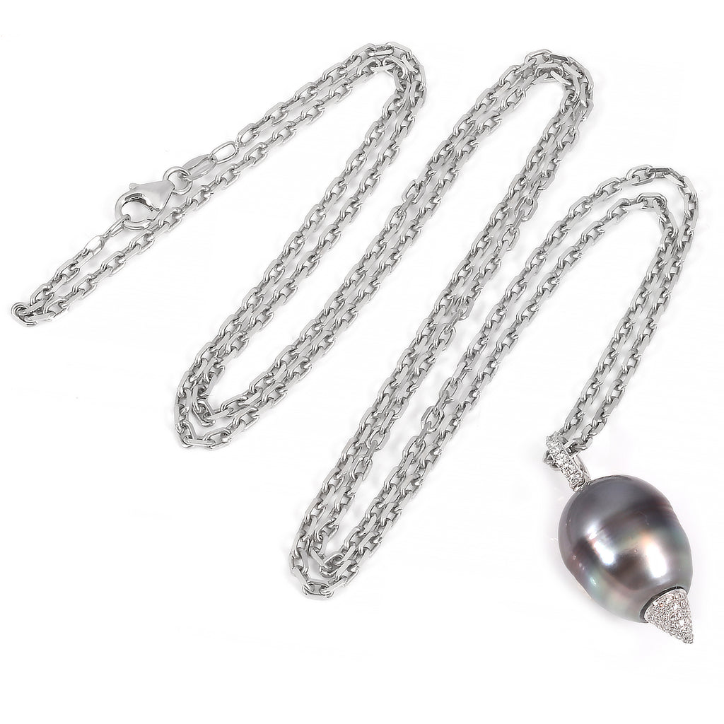 ["18k White Gold","Chain","LS","Mini Square Link Chain","Necklace","NK Online","NKP-251-WG","online necklace","P-3924","Pave Diamond Spike Pearl Pendant","Tahitian Pearl","Tahitian Pearl Pave Diamond Spike Pendant Necklace","White Gold"]