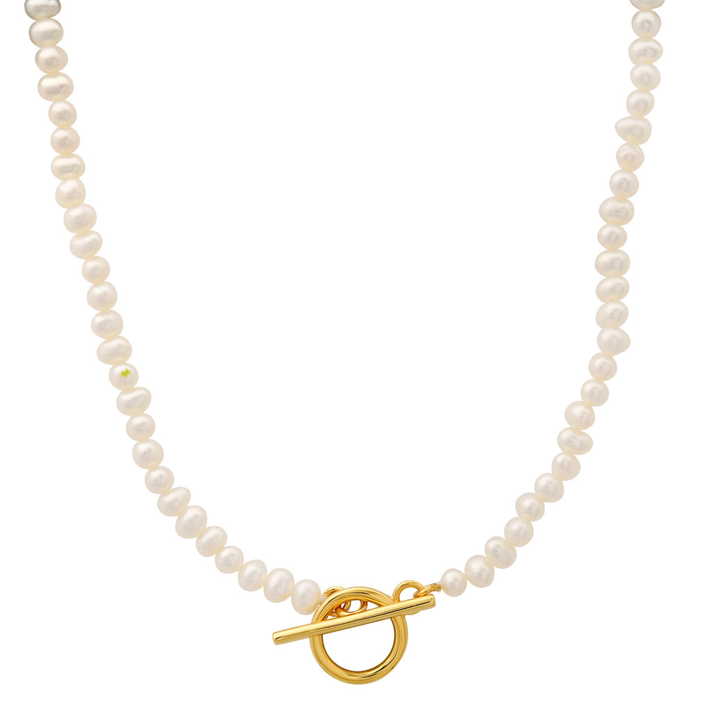 Mini White Fresh Water Pearl Strand Toggle Clasp Necklace