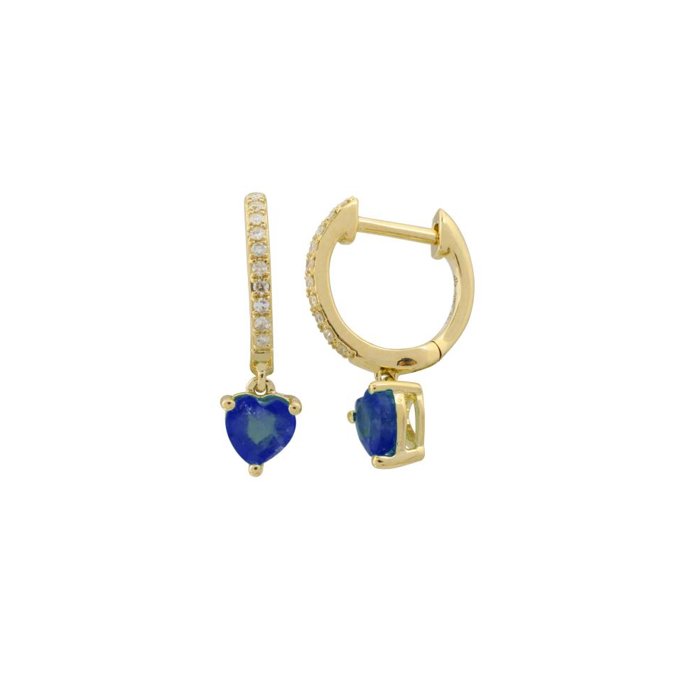 ["12055","14k Yellow Gold","blue sapphires","bridal","diamonds","EPH-062","giftguide","online earrings","P-4042","Prong Set Blue Sapphire Heart Dangle Pave Diamond Huggie Hoop Earrings","SSU"]