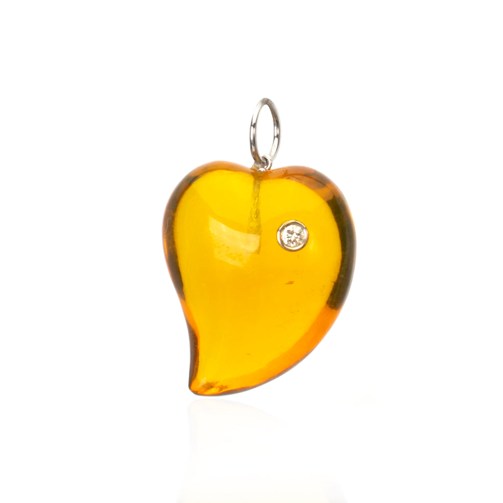SIngle Diamond Bezel Encrusted Amber Heart Pendant